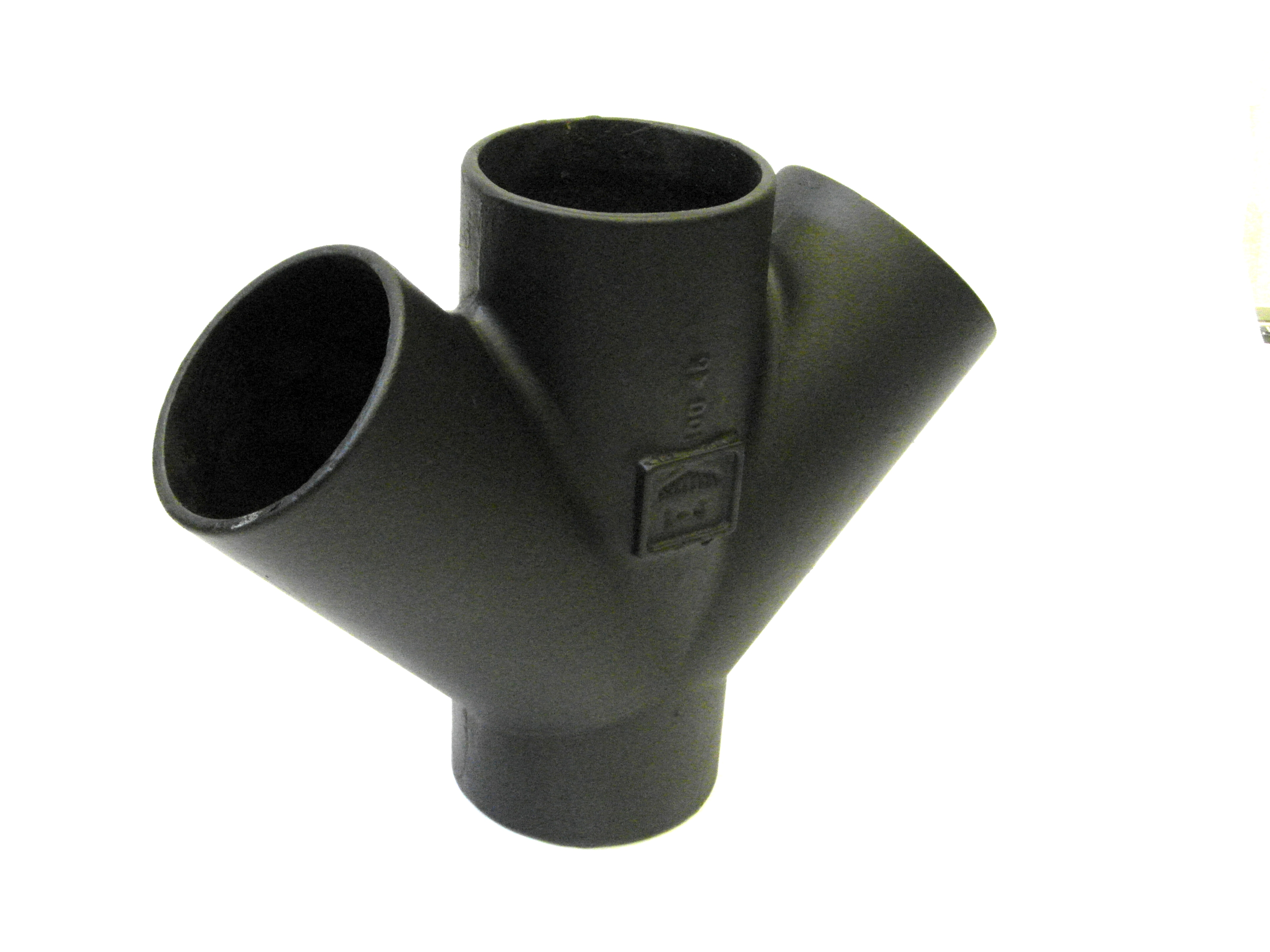 Timesaver Soil cast iron double branch with swept radius entry to maximise the lateral discharge flow from back to back WC’s into the main soil vertical stack in accordance with BS EN 12056 part2.