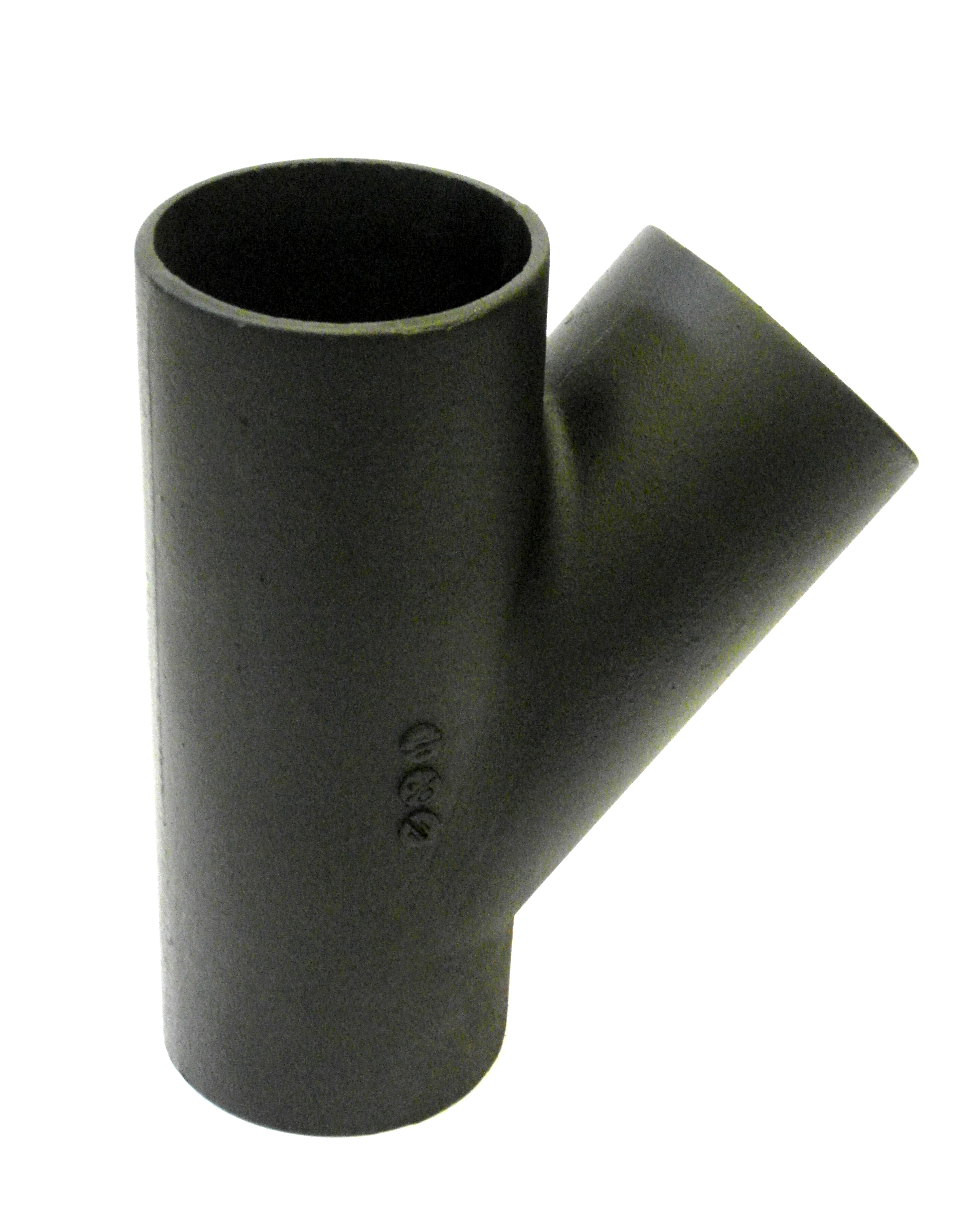 Timesaver soil cast iron single branch with a swept radius to maximise the lateral discharge flow from a WC into the main vertical soil stack in accordance with design guidelines BS EN 12056 part 2. The branch is also fitted with a 2” (50mm) bsp boss for waste connection available in 3 positions: left side, right side or at the back.