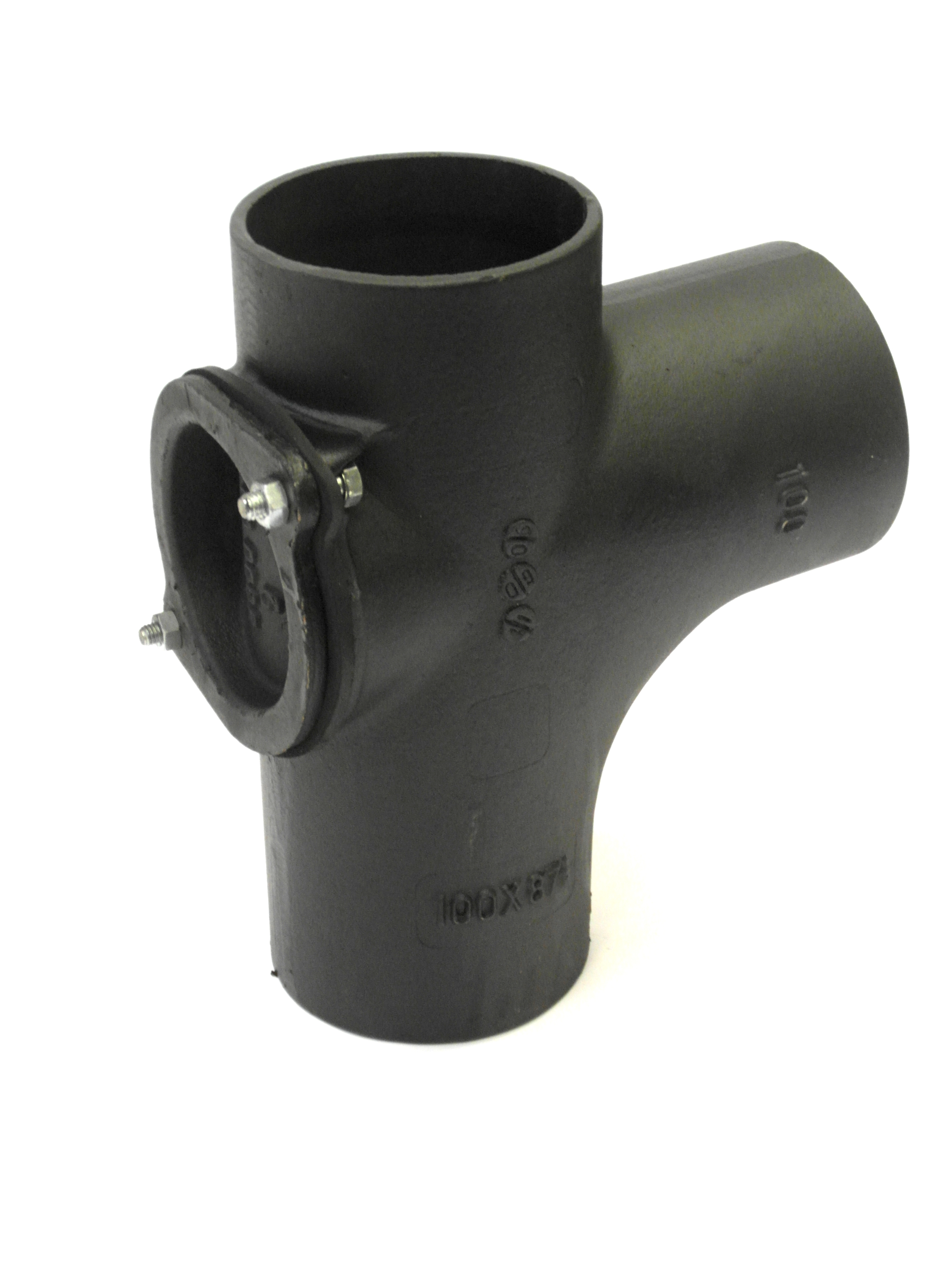 Timesaver soil cast iron single branch with a swept radius to maximise the lateral discharge flow from a WC into the main vertical soil stack in accordance with BS EN 12056 part2. An opening is provided at the back protected by a door to allow access to the system to clear any debris or blockage.