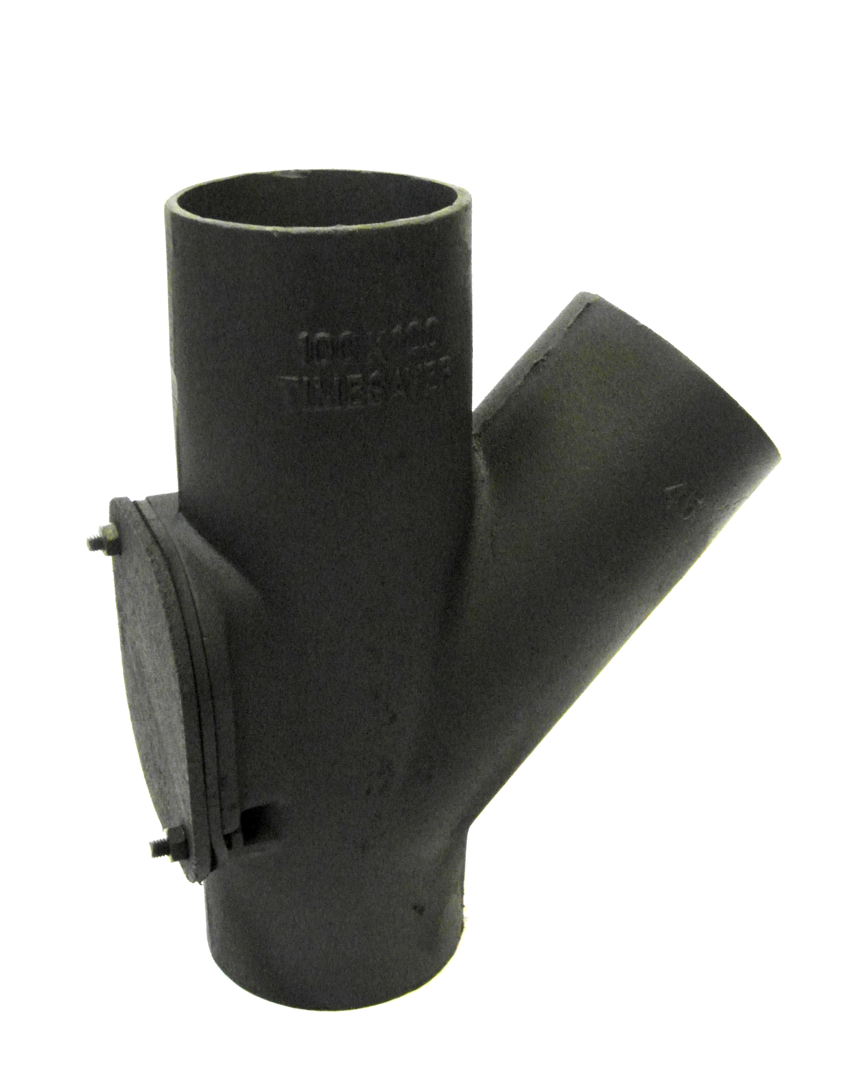 Timesaver soil cast iron single branches allow for lateral connection. An opening is provided protected by a door to allow access to the system to clear any debris or blockage.