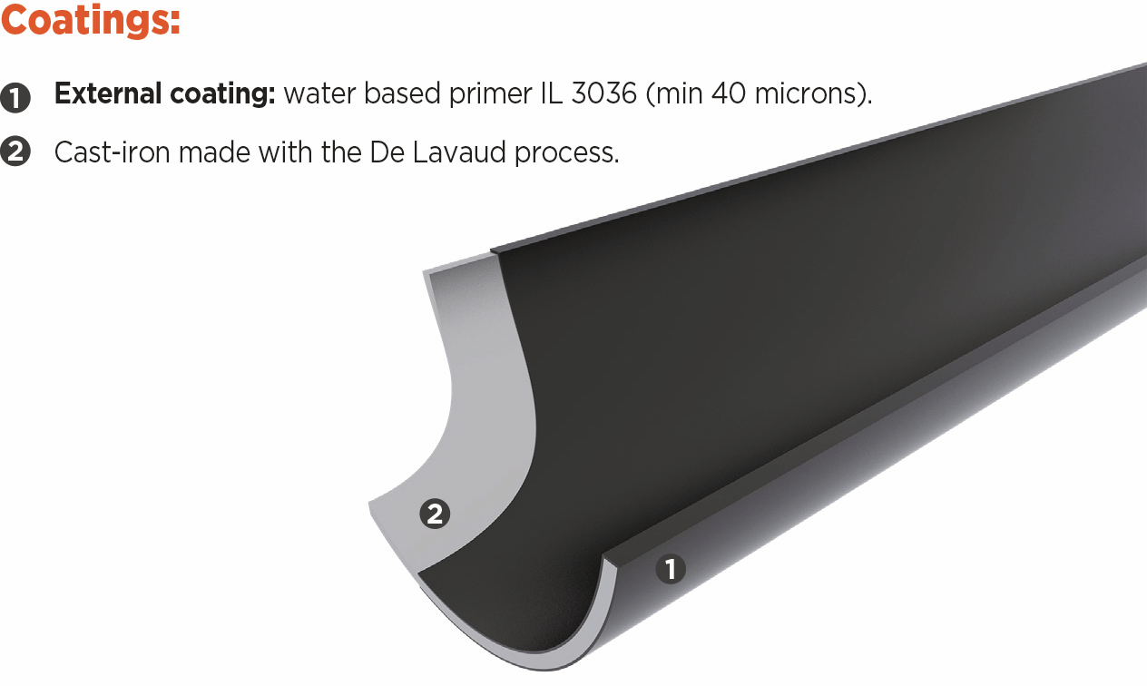 Prepainted in high performance semi gloss black paint. Classical cast iron circular spigoted pipes for the vertical discharge of rainwater from a building into the below ground drainage network.