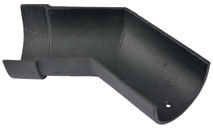 G811 Classical Rainwater Deep Half Round Gutter Angle Single Socket Primed. Right Hand 100mm x 75mm x 135°. Classical cast iron deep half round gutter angle is part of a complete system that is attached to a roof of a house or building that collects and directs rainwater away from the roof and eaves into a vertical pipe discharge system.