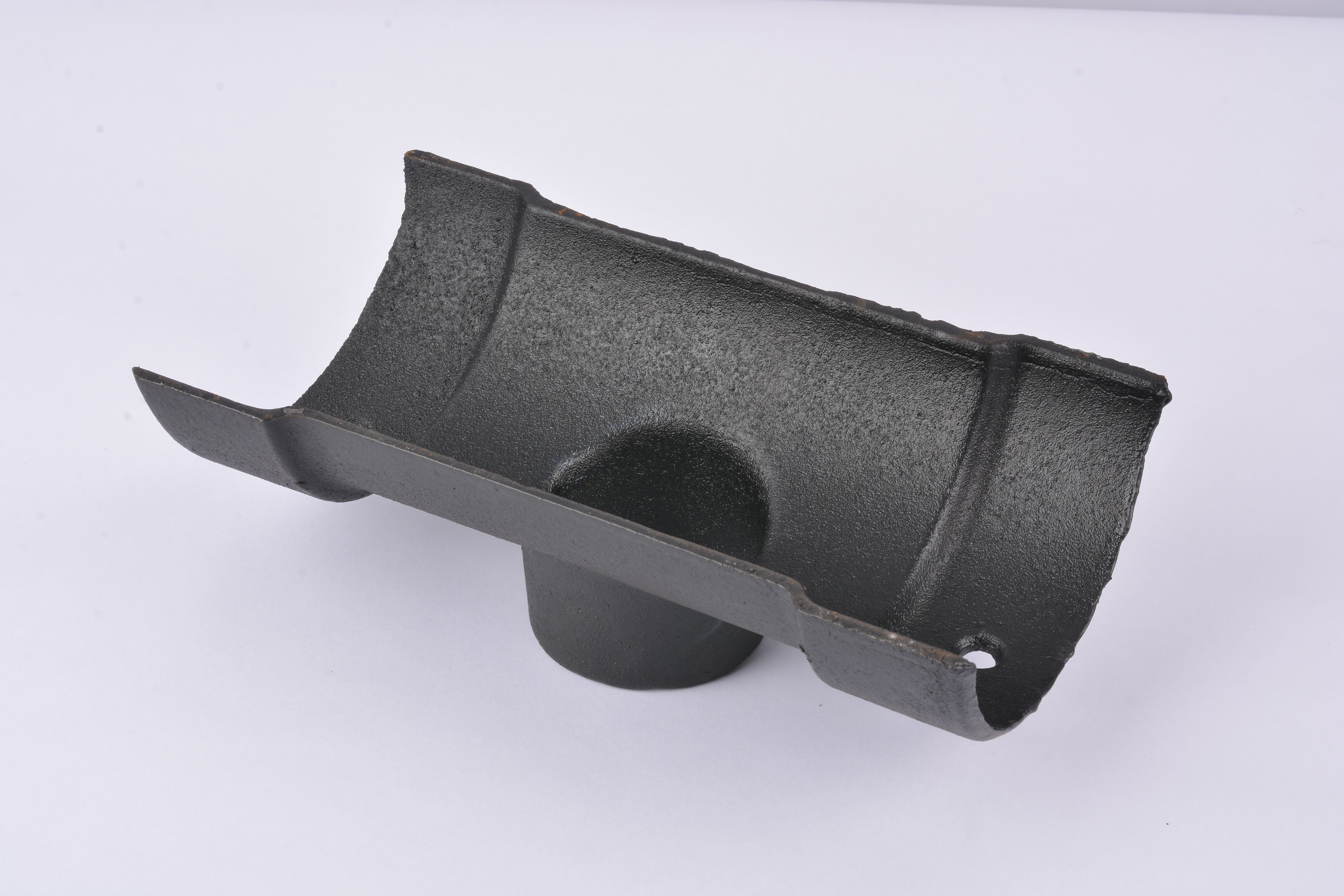G806 Classical Rainwater Half Round Primed Gutter Nozzle 115mm x 65mm. Classical cast iron standard half round gutter nozzle is part of a complete system that is attached to a roof of a house or building that collects and directs rainwater away from the roof and eaves into a vertical pipe discharge system
