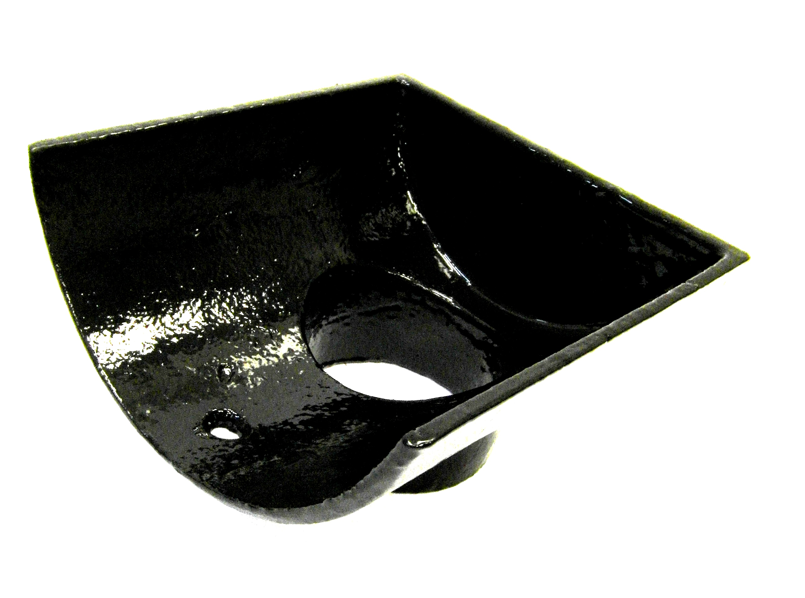 The half round dropend with socket connects to the spigot end of the half round gutter to terminate the flow at the end point of the gutter run, whilst allowing discharge from the gutter into the vertical pipe system usually through a pipe offset A594 connecting to a wall fixed pipe