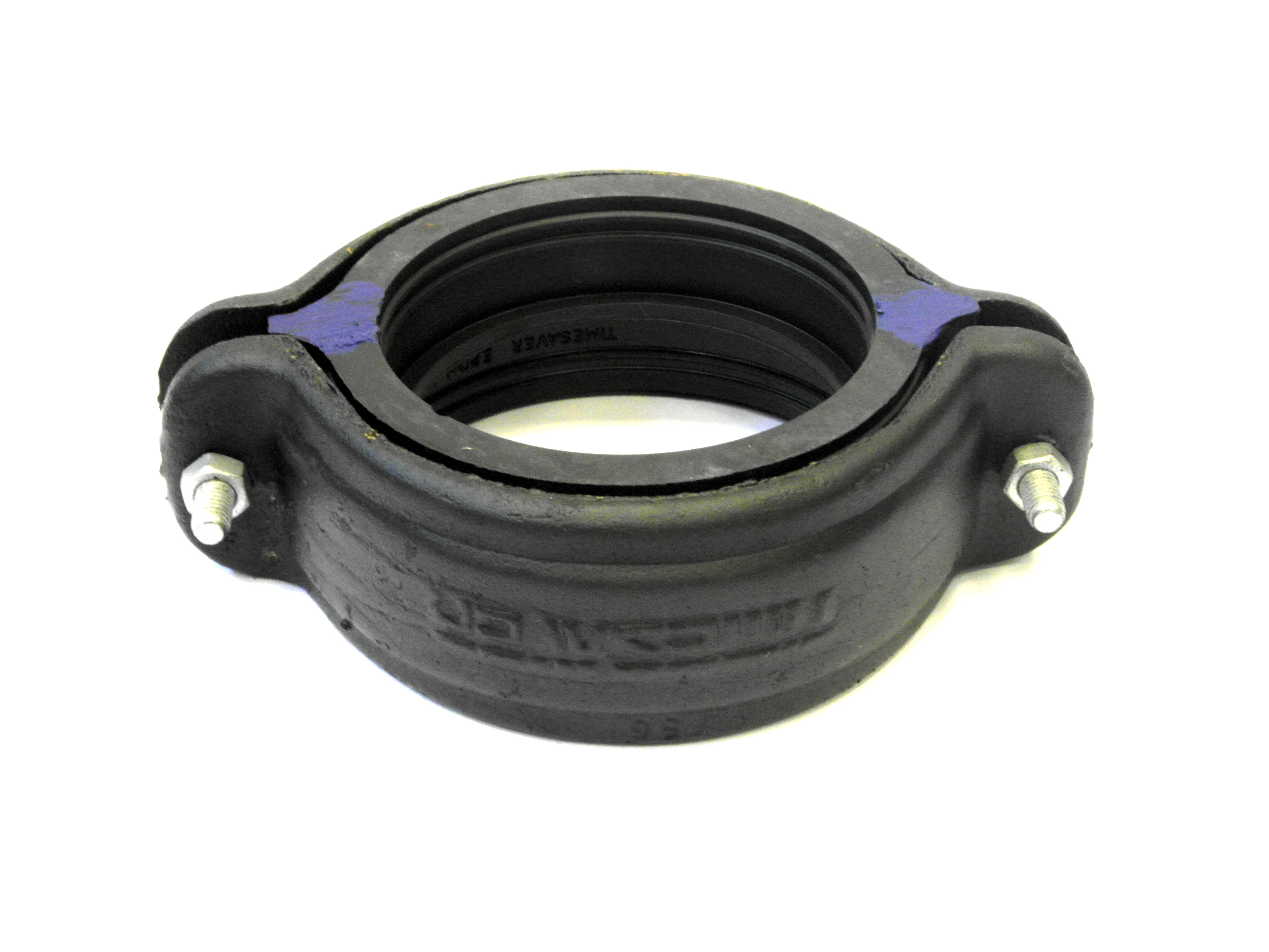 Timesaver soil ductile iron two-part transitional couplings for connecting two different OD spigot ended cast iron pipes and fittings which includes an EPDM gasket as standard. The couplings are assembled utilising two M8 stainless steel nuts and bolts . The couplings are evenly assembled using a rachet spanner and deep socket to leave a gap of 2-3mm, or if using a torque wrench set at 20 Nm minimum.