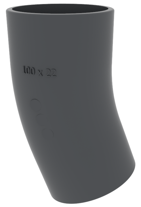 This is a longer bend at 22 degrees that gives you more bend flexibility in the design of your system.