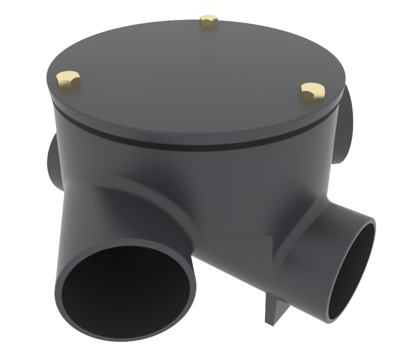 The two branch arm entries are both at 45° conforming to BS EN 12056 part 4, and the body is fitted with a circular cast iron inspection lid and gasket seal to prevent odours escaping into the atmosphere. Where other angles of entry are necessary these can be achieved by the use of standard bends.